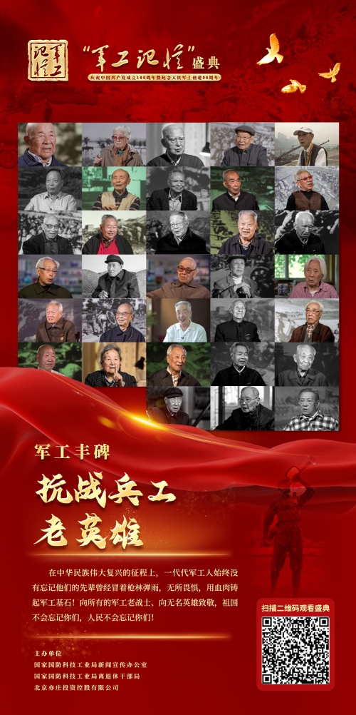 為慶祝中國共產(chǎn)黨成立100周年和紀(jì)念人民軍工事業(yè)創(chuàng)建90周年,國防科工局新聞宣傳辦公室、國防科工局離退休干部局、北京亦莊投資控股有限公司聯(lián)合主辦,各軍工集團公司和中物院協(xié)辦的“軍工記憶”特別節(jié)目,于7月31日正式在央視頻上線。
