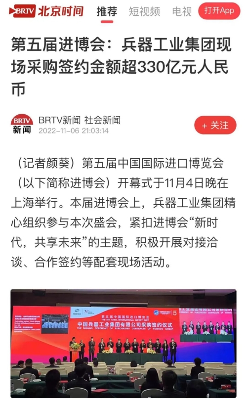 兵器工業(yè)集團(tuán)第五屆進(jìn)博會(huì)成果受到廣泛關(guān)注