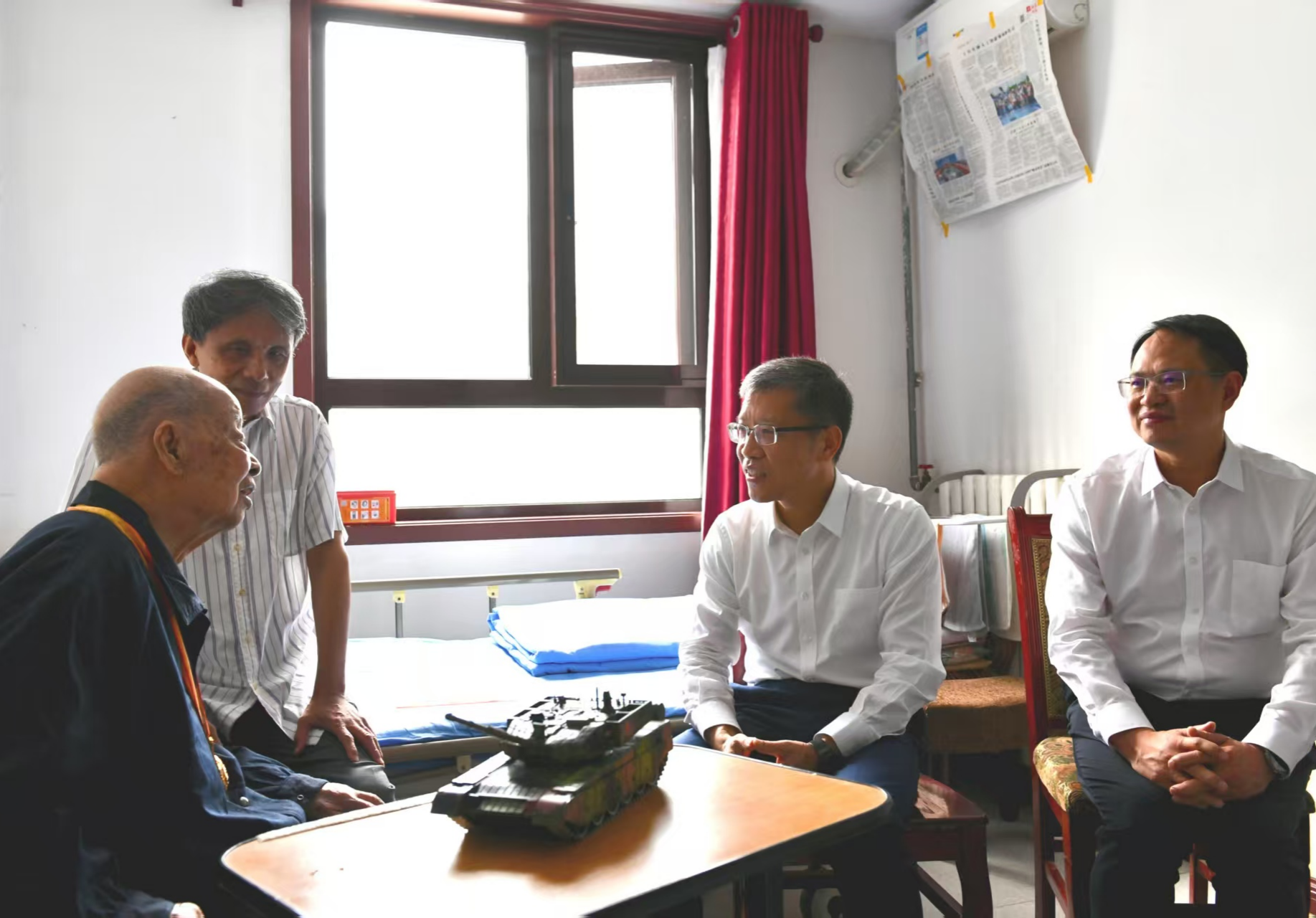 8月28日,在紀(jì)念中國(guó)人民抗日戰(zhàn)爭(zhēng)暨世界反法西斯戰(zhàn)爭(zhēng)勝利80周年之際,中國(guó)兵器工業(yè)集團(tuán)有限公司黨組書(shū)記、董事長(zhǎng)周治平看望慰問(wèn)抗戰(zhàn)老戰(zhàn)士苑紀(jì)同志,代表集團(tuán)公司黨組向全系統(tǒng)抗戰(zhàn)老戰(zhàn)士、老同志致以崇高敬意和誠(chéng)摯問(wèn)候。集團(tuán)公司黨組成員、副總經(jīng)理葉文華一同參加。 在苑紀(jì)同志住處,周治平關(guān)切詢(xún)問(wèn)苑老的身體狀況、生活照料和醫(yī)療護(hù)理等情況,鄭重地為他佩戴“中國(guó)人民抗日戰(zhàn)爭(zhēng)勝利80周年”紀(jì)念章,衷心感謝他為黨和國(guó)家事業(yè)以及人民兵工發(fā)展作出的重要貢獻(xiàn)。今年已年滿(mǎn)100周歲的苑紀(jì)老同志,佩戴上彰顯偉大勝利、體現(xiàn)崇高榮譽(yù)的紀(jì)念章,感到十分光榮。他動(dòng)情地說(shuō),作為一名老兵,自己一輩子相信黨、跟著黨,烽火歲月令人難忘,幸福生活來(lái)之不易,衷心感謝習(xí)近平總書(shū)記的牽掛和黨中央的關(guān)懷,感謝兵器工業(yè)集團(tuán)黨組的關(guān)心和照顧,祝福祖國(guó)繁榮昌盛,祝愿兵器事業(yè)蒸蒸日上。 周治平表示,以中共中央、國(guó)務(wù)院、中央軍委名義發(fā)放紀(jì)念章,充分體現(xiàn)了以習(xí)近平同志為核心的黨中央對(duì)抗戰(zhàn)老戰(zhàn)士、老同志的高度重視和深切關(guān)懷。我們要永遠(yuǎn)銘記抗戰(zhàn)老戰(zhàn)士、老同志的英勇事跡和歷史功績(jī),大力弘揚(yáng)“把一切獻(xiàn)給黨”的人民兵工精神,從偉大抗戰(zhàn)精神中汲取奮進(jìn)力量,推動(dòng)集團(tuán)公司全系統(tǒng)形成崇尚英雄、學(xué)習(xí)英雄、爭(zhēng)做英雄的良好風(fēng)尚,奮力譜寫(xiě)新時(shí)代新征程兵器工業(yè)高質(zhì)量發(fā)展新篇章。集團(tuán)公司各級(jí)黨組織要深入學(xué)習(xí)貫徹習(xí)近平總書(shū)記關(guān)于老干部工作的重要論述和重要指示批示精神,帶著敬重、帶著責(zé)任,用心用情、精準(zhǔn)精細(xì)做好各項(xiàng)服務(wù)保障工作,讓兵器老同志時(shí)刻感受到黨的關(guān)懷溫暖,安享幸福晚年。 苑紀(jì),生于1925年2月,先后參加過(guò)抗日戰(zhàn)爭(zhēng)和解放戰(zhàn)爭(zhēng),曾任第五機(jī)械工業(yè)部電子光學(xué)儀器生產(chǎn)管理局局長(zhǎng)、兵器工業(yè)部五局局長(zhǎng),榮獲“兵器工業(yè)特殊榮譽(yù)獎(jiǎng)”。2015年9月3日,作為抗戰(zhàn)老戰(zhàn)士代表參加紀(jì)念抗日戰(zhàn)爭(zhēng)勝利70周年大會(huì)及閱兵儀式。(兵器離退休干部局) |